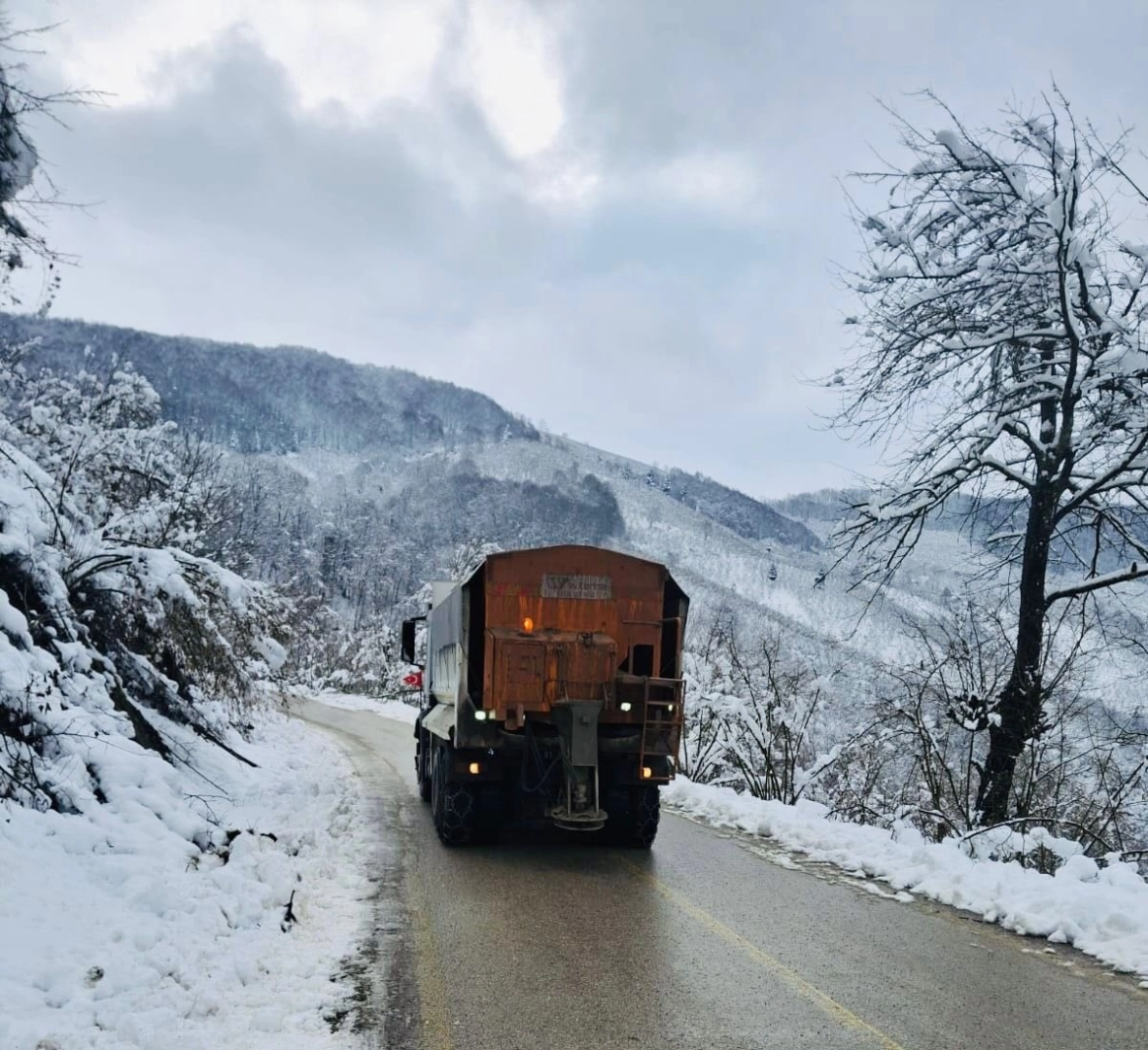 DÜZCE (İHA) – Düzce İl Özel İdaresi ekipleri, etkili olan kar yağışının ardından ulaşıma açılan köylerin ana yollarında oluşabilecek buzlanmalara karşı tuzlama çalışmalarını sürdürüyor.