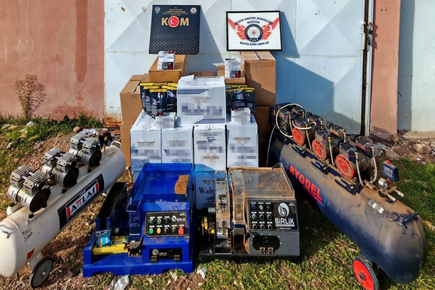 Bilecik’in Bozüyük ilçesinde Kaçakçılık ve Organize Suçlarla Mücadele Şube Müdürlüğümüzce kaçak tütün mamulleri imalatı ve satışına yönelik düzenlenen operasyon düzenlendi. Operasyonda eş zamanlı aramalarda, bir araçta ve depo/imalathane olarak kullanılan ikamette kaçakçılara büyük darbe vuruldu. Aramalarda 94 bin 800 adet boş makaron, 3 bin 600 adet dolu makaron, 33 kilo100 gram kıyılmış tütün, 2 adet profesyonel sigara sarma makinesi, 2 adet kompresör ele geçirildi.
