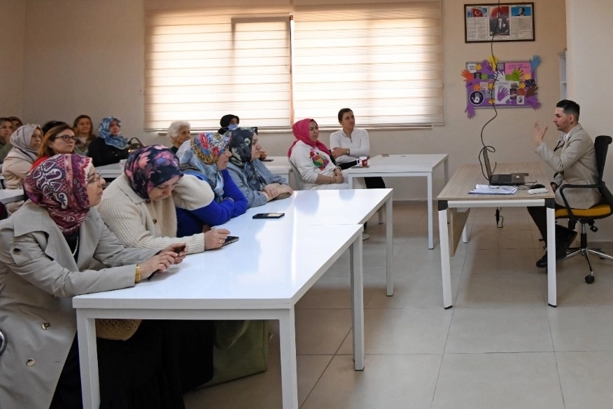 BURSA (İGFA) - Hüdavendigar Sosyal Gelişim Merkezi’nde gerçekleşen ‘Kadın ve Toplum’ başlıklı söyleşide klinik psikolog Safa Güçlü Akın, OSMEK kursiyerlerine kadına yönelik şiddetin psikolojik, sosyal ve hukuki boyutları hakkında bilgiler verdi. Aynı zamanda program boyunca Akın, kadının toplumdaki yeri ile toplumsal roller konularını da işledi.