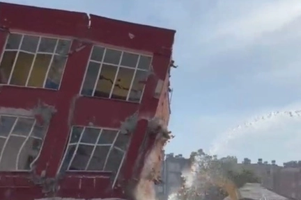 Alınan bilgiye göre, Şehit Mustafa Mahallesi Cumhuriyet Caddesinde bulunan 2 katlı bina depremde ağır hasar aldı. Yerinde dönüşüme alınarak yıkım kararı verilen bina için kontrollü yıkıma başlandı. Gerekli tedbirlerin alınmasından sonra kent merkezinde bulunan binanın titretme yöntemiyle yıkılması uygun görüldü. Binayı yıkmak için gelen iş makinesi, 2 katlı yapıya dokunmadan titreşimle binayı yıktı. Titreşim ile yıkılan 2 katlı binada toz bulutları oluştu.