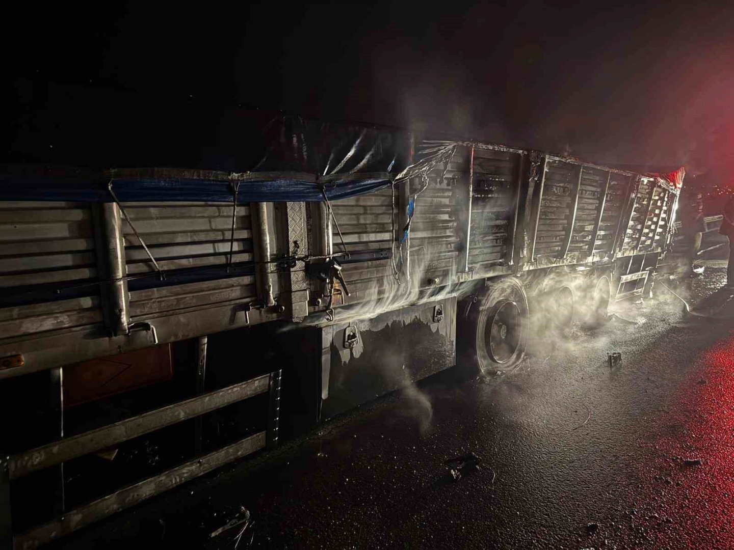 Yangın, akşam saatlerinde Tarsus-Adana-Gaziantep (TAG) Otoyolu Düziçi-Osmaniye arasındaki Şekerdere mevkiinde meydana geldi. Edinilen bilgilere göre, Adana istikametine doğru ilerleyen tırın dorsesindeki tekerler aniden alev aldı. Alevlerin kısa sürede tüm tırı sarması üzerine durumu fark eden tır sürücüsü, aracı hızla emniyet şeridine çekerek, büyük bir faciayı önledi. Sürücünün 112 Çağrı Merkezi’ne haber vermesi üzerine olay yerine sevk edilen Düziçi Belediyesi İtfaiye Müdürlüğü ekipleri, yangına kısa sürede müdahale etti. Söndürülen yangının çıkış nedeninin belirlenmesi için inceleme başlatıldı.